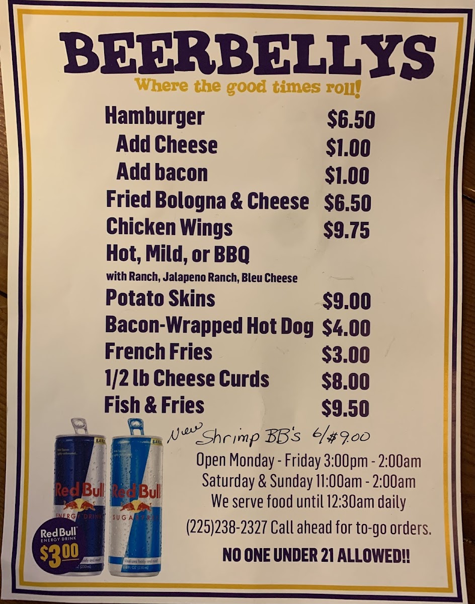 Welcome to Beer Belly's Bar & Grill, a gem nestled in the heart of Plaquemine, Louisiana. This establishment prides itself on serving mouth-watering dishes that truly satisfy. Start your culinary journey with their famous burgers, described by customers as simply “a damn good burger” featuring luscious cheese and crispy bacon. The menu doesn’t stop there; patrons rave about the vibrant atmosphere, complemented by live music from local bands like the Back Alley Band, enhancing your dining experience.